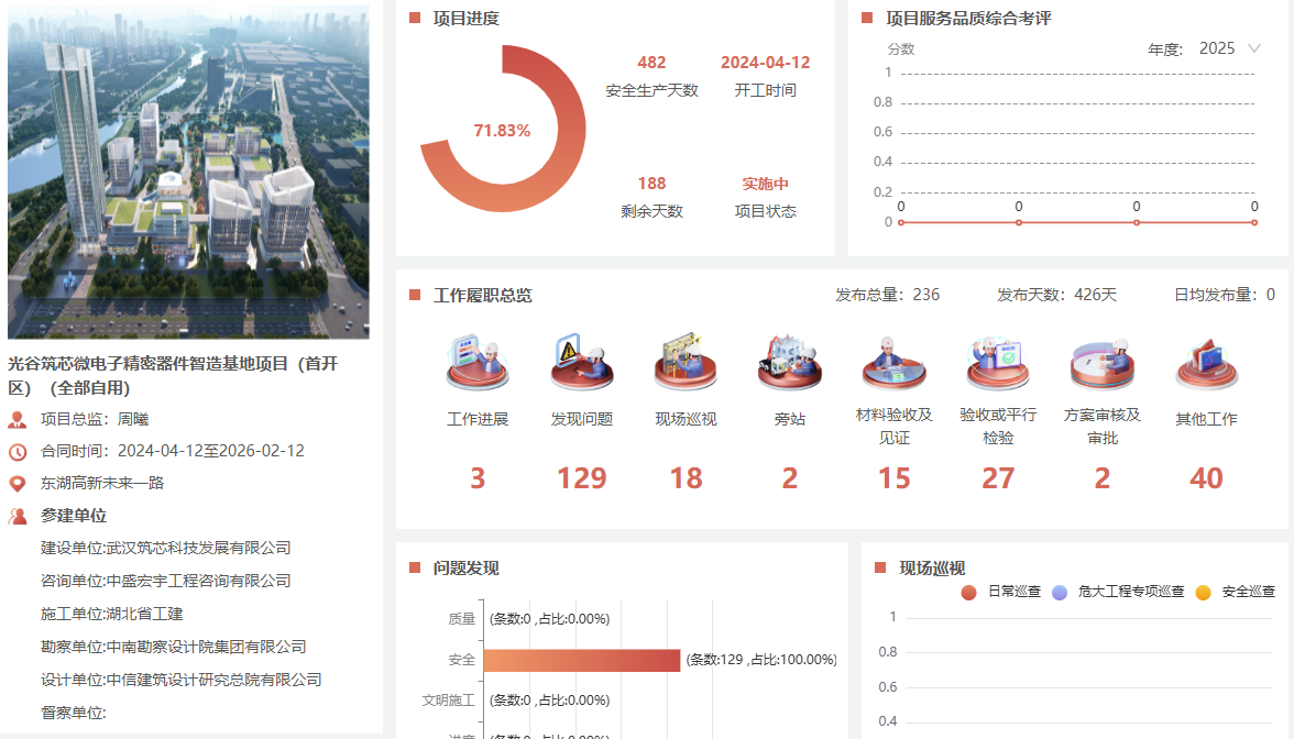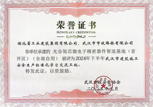 光谷筑芯微電子精密器件智造基地項目規模宏大,用地約5.7萬㎡,總建面超10.5萬㎡,涵蓋8個功能各異的試驗/中試車間及完善配套設施。 在總監理工程師周曦帶領下,項目團隊科學統籌,精益管控,接連斬獲“湖北省建筑工程安全文明施工現場”、“結構優質工程”、“武漢市安全生產標準化學習交流工地”、“文明施工紅旗單位”等重磅榮譽,并在公司分支機構項目監理部2024年終及2025年中兩期考評中蟬聯第一名,品質與管理實力獲得政府、行業的高度認可。